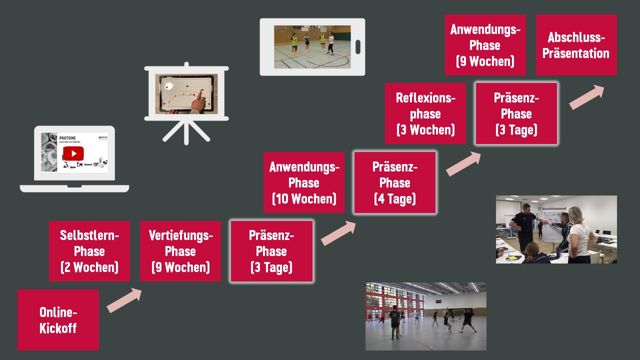 Die Ausbildung muss innerhalb eines Zeitraums von zwei Jahren mit einer theoretischen und einer praktischen Prüfung abgeschlossen werden. Abweichend davon darf zwischen der DHB Kinderhandball-Trainer*in Ausbildung und dem Beginn der weiteren Ausbildungsmodule ein Zeitraum von maximal zwei Jahren liegen.