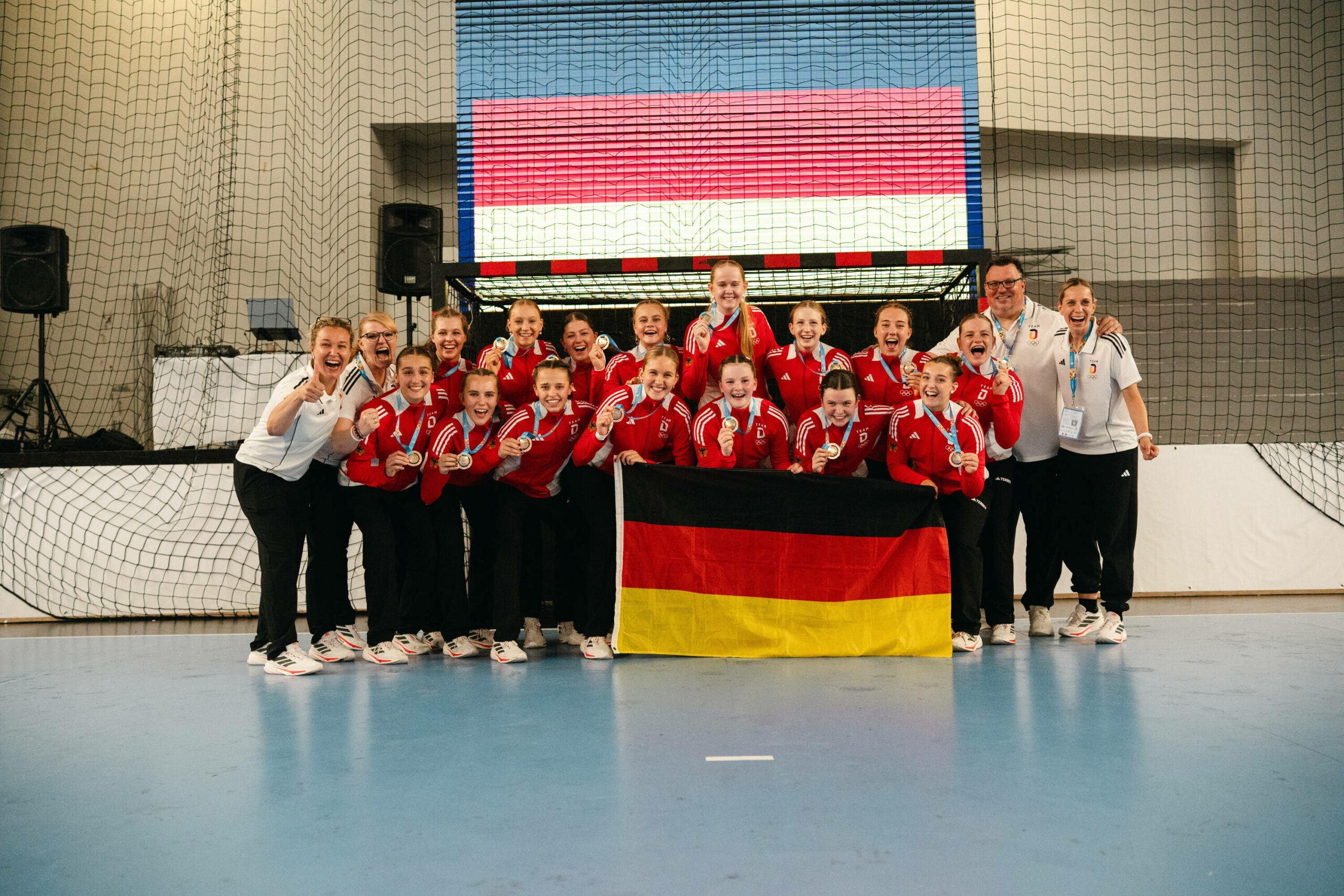 Eine Entscheidung, die mit Bedacht gewählt wurde. „Wir haben uns bewusst dazu entschieden, die Breite des Doppeljahrgangs 2008/2009 bei den zwei Turnieren zu nutzen, um so vielen Spielerinnen frühzeitig Erfahrungen auf internationalem Parkett zu ermöglichen. Da sind wir einen anderen Weg als viele andere Nationen gegangen, die zum EYOF wie auch zur U17-EHF EURO dieselben Kader schicken“, sagt Ingo Meckes, Vorstand Sport des Deutschen Handballbundes. „Das Aufgebot in Skopje hat sich aus vielen Spielerinnen des Jahrgangs 2009 zusammengesetzt, denen wir mit der Teilnahme am EYOF eine Perspektive geboten haben, sich mit anderen Nationen auf hohem Niveau zu messen. Dass wir am Ende Gold mit nach Hause nehmen, ist natürlich großartig. Diese Erfahrungen geben den Spielerinnen für ihre weitere Entwicklung einen gewaltigen Schub, sportlich wie auch abseits der Platte. Jetzt freuen wir uns sehr auf die U17-EHF EURO in Montenegro und gehen ebenfalls optimistisch in das Turnier.“